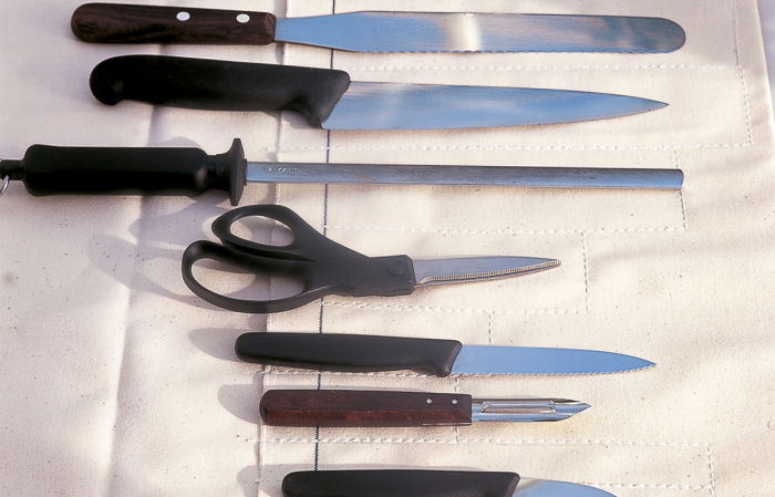 Every kitchen needs a good set of knives. The best for home cooking are light to hold, with flexible blades (the flexibility makes sharpening easier).