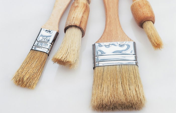 The flatter brushes which look like miniature decorator's brushes, are the best for large surfaces, while the rounder shape is okay for brushing round rims of pastry.