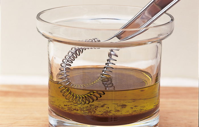 The miniature wonder whisk is far more practical than a standard balloon whisk when making sauce in a small pan, and for whisking oil and vinegar for a salad dressing.