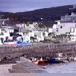 Remote would be precisely the word to describe this village – with a population of 40, small groups of houses nestling round an empty bay, the loch itself surrounded by breathtakingly beautiful hills on either side, and their colours now sultry shades of purple brightened only by splashes of bright yellow gorse.