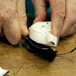 Now discard the shell and take off the inner skin using a potato peeler or a sharp knife. Then rinse under a running tap to ensure the pieces are completely clean.