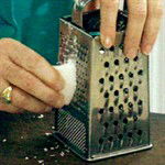 The coconut is now ready to use – you can grate it by hand on the medium blade of the grater, but this is quite time-consuming.