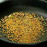 First of all you need to roast the whole spices, and to do this place them in a small frying pan or saucepan over a medium heat and stir and toss them around for 1-2 minutes, or until they begin to look toasted and start to jump in the pan.
