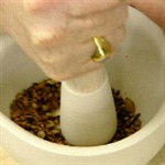 Now transfer them to a pestle and mortar, crush them to a powder or coarsely grind them according to the recipe instructions. This will be easier to do now that they have been roasted.