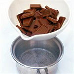 For this you will need a large bowl to sit over a saucepan filled with a couple of inches of barely simmering water, making sure the base of the bowl doesn't touch the water. Break up the chocolate into pieces, add them to the bowl and, keeping the heat at its lowest, leave the chocolate to melt slowly.