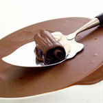 To make chocolate curls: melt the chocolate as above and then pour it on to a flat, smooth surface; the underside of a large plate will do. It should form a circle of about 6 inches (15 cm) diameter and ¼ inch (5 mm) thick. Place the plate in the fridge to chill for 45 minutes. What you want is the chocolate to be set hard enough so that if you press the surface of the chocolate it doesn't leave an indentation.