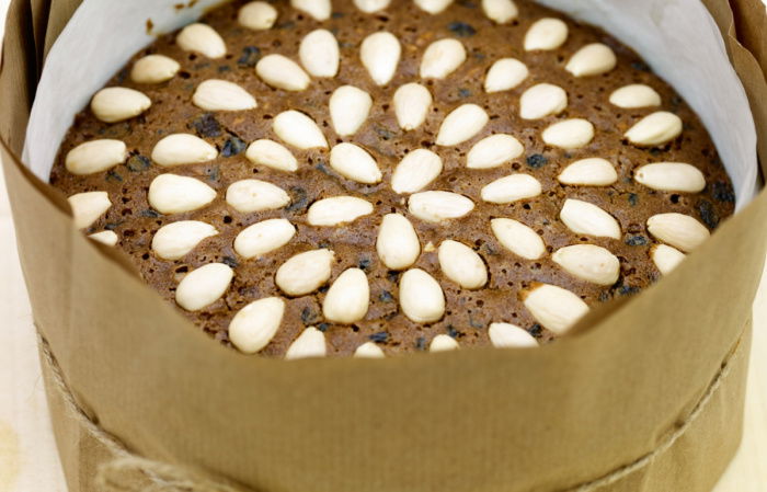 For those who like a well-brandied cake, a little 'feeding' of the cake at odd intervals (say, weekly) before Christmas will add an extra dimension to it. This is done by making small holes in the top and bottom of the cake with a darning needle, then spooning over teaspoonfuls of brandy to soak in through the holes and permeate the cake.