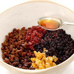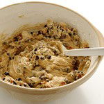 Add the soaked fruits to the cake mixture, along with 2 oz (50 g) of chopped almonds (the skins can be left on), the grated zest of 1 orange and 1 lemon and 1 dessertspoon of black treacle. Fold these in carefully, using the same movements as before.