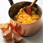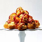 Choux pastry is the lightest, crispiest, airiest pastry, which can be used to make profiteroles, éclairs or savoury gougères. It puffs up in the oven until it is eventually set by the heat. The airiness, in fact, is caused because choux has a high water content, which is turned into steam during baking and this forces the pastry shell outwards and gives it volume. What is really good about choux is that it doesn't call for any particular pastry skills, like lightness of hand or careful rolling. I never pipe choux because I am convinced that a freshly baked golden profiterole looks so much crustier if it is spooned, rather than piped, on to a baking sheet.