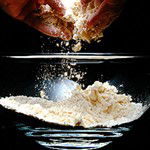 As you lightly rub the fat into the flour, lift it up high and let it fall back down into the bowl, which again means that air is being incorporated all the time, and air is what makes pastry light. Speed is also what's needed here, so don't start daydreaming and go on rubbing all day, but just long enough to make the mixture crumbly with just a few odd lumps here and there. Keep cool – this means yourself, psychologically, as well, because keeping things as cold as possible is important. If the fat becomes oily because the rubbing-in takes longer and everything is too warm, what happens is it coats more flour grains than it should. This means the flour is unable to absorb enough water and the pastry will crumble and be difficult to roll out.