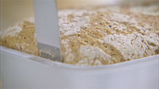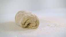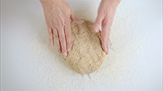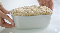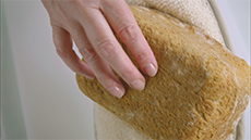 When the bread is cooked, loosen the edges with a palette knife and turn it out on to a cloth to protect your hands.