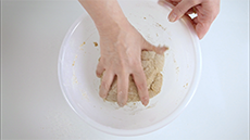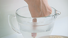 Make a well in the centre and pour in all the hand-hot water.