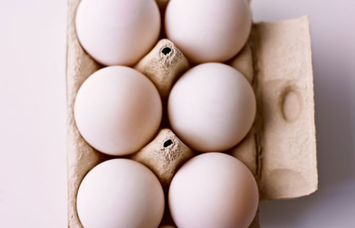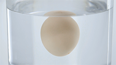 If you pop a fresh egg in, and it sinks and sits horizontally on the bottom, it's really fresh