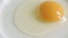 A very fresh egg has a plump, rounded yolk that sits up proud