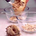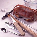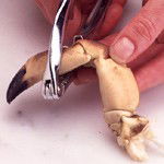 Crack the claws and legs with your hammer or nutcracker then, with a skewer, poke out all the white meat into the appropriate bowl.