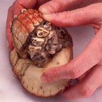 From the shell remove and discard the small greyish-white stomach sac, situated just behind the mouth.