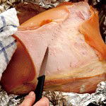 You need to check with your supplier about soaking the ham – the length of time needed depends on the quantity of salt used in curing the ham. A large plastic bucket seems to be the most suitable container for soaking a ham – and I have found that a picnic cool box is just the right size, too. Cover the ham completely with cold water and leave for as many hours as the supplier recommends. Smaller joints can be placed in the cooking pot, covered with cold water, brought up to simmering point, then the water thrown out (if you're in any doubt about the saltiness, taste a sliver of the meat to make sure).