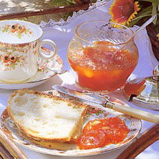 How to test for a set: at the same time as you begin cooking the fruit, place three or four saucers in the freezing compartment of the fridge. When you have boiled the jam for the given time, remove the pan from the heat and place a teaspoonful of the jam on to one of the chilled saucers. Let it cool back in the fridge, then push it with your finger: if a crinkly skin has formed on the jam, then it has set. It if hasn’t continue to boil for another 5 minutes, then do another test.