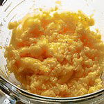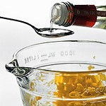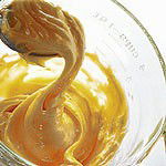 3. Using an electric whisk in one hand (which is the easiest option, but if you have oodles of energy, you can make mayonnaise with a balloon whisk) and 10 fl oz (275 ml) groundnut oil in a jug in the other, add just one drop of oil to the egg mixture, and whisk that in. Strong flavoured oils are not advisable as they will make the mayonnaise too harsh. It is best to use groundnut oil, but if you want a slightly stronger taste you can add a little olive oil towards the end. Because you are dripping oil in with one hand and whisking with the other, you can steady the jug or bowl by placing it on a damp tea cloth. Whisking each drop of oil in thoroughly before adding the next seems crazy, but it is absolutely essential and, just to reassure you, after a few minutes and several drops of oil later, the mixture will begin to thicken. |