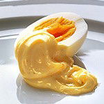 1. In the summer months one of the greatest treats of all is real, proper home-made mayonnaise; a thick mass of unctuous golden ointment, perfect for dipping asparagus into, or slices of raw vegetables (crudités). It makes a perfect accompaniment to salmon, cold or hot, but it is also utterly sublime served with hard-boiled eggs in a classic egg mayonnaise. It should be stored in a screw-top jar in the bottom of the fridge for no longer than a week. |