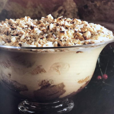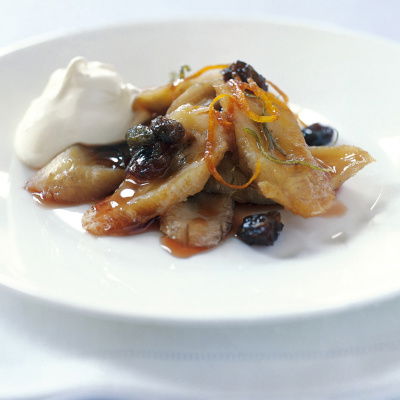 Bananas also tend to discolour if they are exposed to the air, so if you are preparing them for a recipe they should be tossed in lemon juice if they have to wait around. However, when they're submerged and cut off from the air they stay creamy white with no problem. The recipe for Toffee-fudge Bananas with Toasted Nuts is one of the simplest and easiest desserts I know.