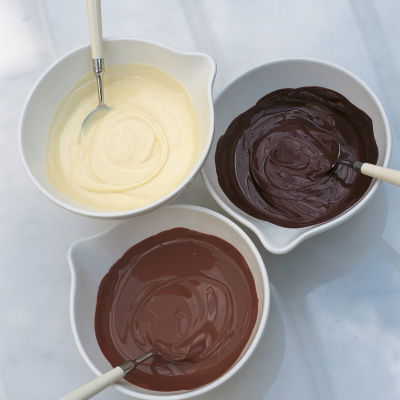 Milk and white chocolate: With milk chocolate, the chocolate’s intense flavour is deliberately diluted to produce a creamier taste. This is achieved by adding whole milk solids, sometimes in equal quantity to the cocoa solids. White chocolate is not actually chocolate at all. It is made from milk solids, sugar and fat, with a little cocoa butter added, and has a bland, over-sweet taste. Neither are ideal for cooking as such, but are useful for coating or topping.
