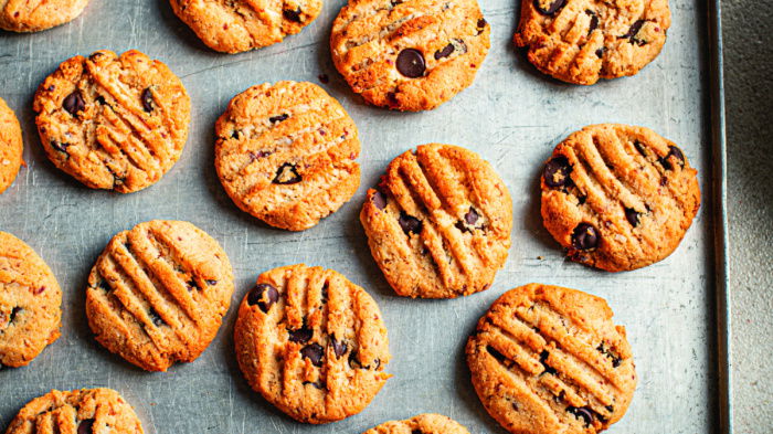 AIR-FRYER TIP: Preheat the air fryer to 160°C, if needed. Prepare and shape the cookies as Steps 2–4. Air fry (in batches) for 10 minutes, or until firm and turning deep golden brown around the edges.