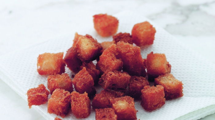 Crisp, golden croutons are lovely sprinkled over the top of a bowl of hot or chilled soup.