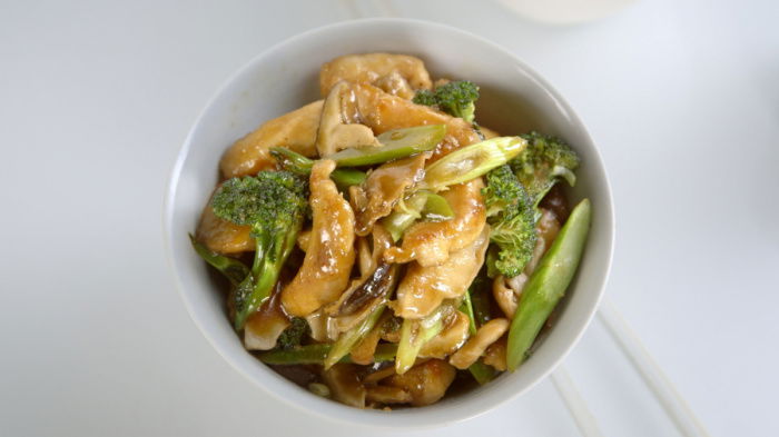 Then put a lid on the pan and cook for a further minute. Serve absolutely straight away with the rest of the spring onion sprinkled over, either with Chinese Stir-fried Rice or Basmati Rice