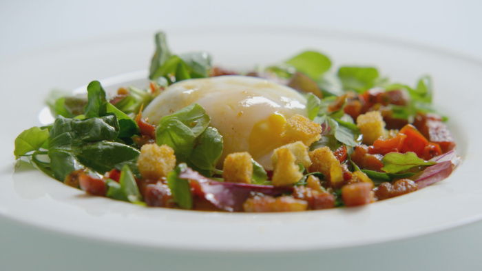For poaching you need very fresh eggs, so watch the date stamp on the box when you buy them and, to be absolutely sure, pop them in to a glass measuring jug filled with cold water: if the eggs sit horizontally on the base they're very fresh. A slight tilt is acceptable, but if they sit vertically your supplier's date stamps are in doubt.
