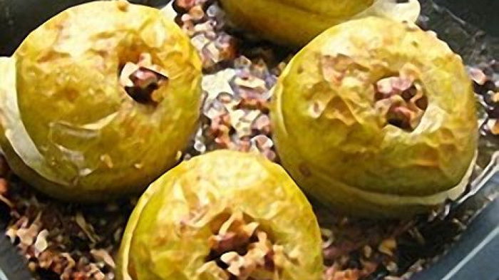 With our apple storer now replenished, we decided on a variation on the traditional baked apple using maple syrup and pecan nuts.