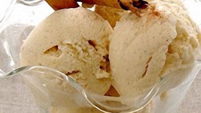 Next day, whip the cream to the soft shape stage, then fold it into the custard (you can now discard the cinnamon stick). The ice cream can now be churned in an ice-cream maker for 20 minutes until it is soft and velvety. Alternatively pour it into a plastic freezer box (approximately 9 x 6 inches/23 x 15 cm), cover the surface with clingfilm, put a lid on and freeze.