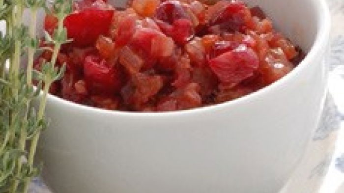 This one is a good accompaniment for all kinds of things at Christmas. As it keeps well in the fridge for four weeks, I personally make double the quantity below and serve it with cold turkey, pheasant, pork pies or, perhaps best of all, with sausages.