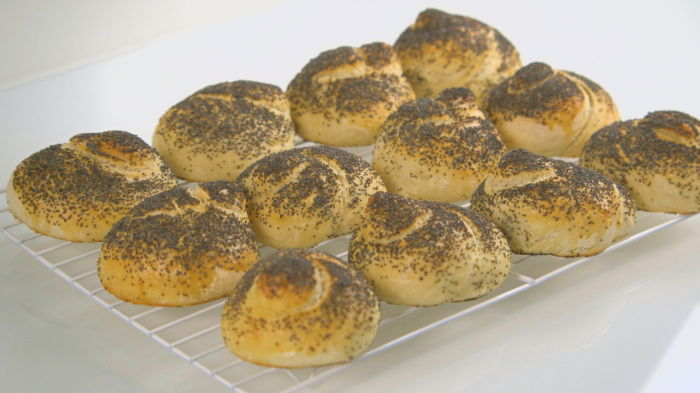 Remove the bag and brush the rolls with beaten egg, then sprinkle the rolls with the poppy seeds, and bake for about 20-25 minutes.