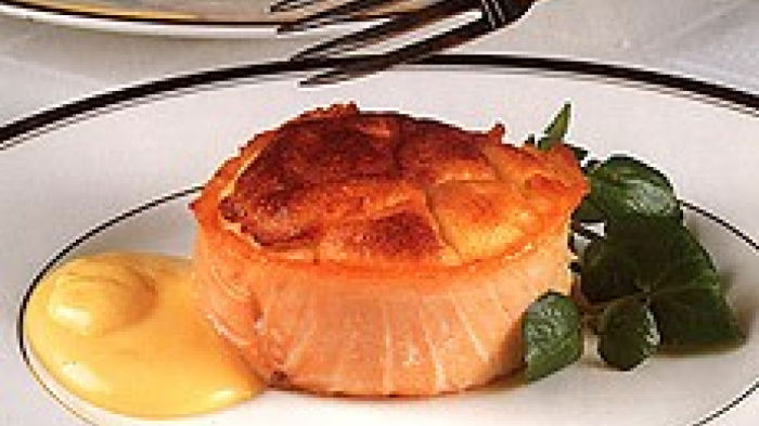 To serve, have some warmed plates ready then turn out each soufflé, holding the ramekin with a cloth and turning it out quickly upside down on to your hand and just as quickly flip it over on to the plate. Garnish with watercress and pour the hollandaise around each one.