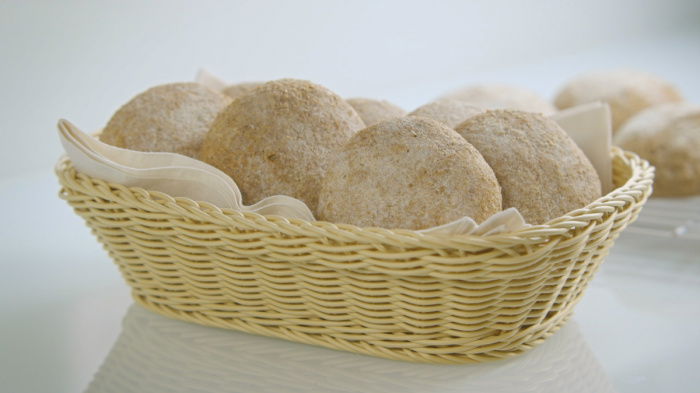 When the rolls have risen, remove the bag and sprinkle them with flour, and bake them on a high shelf of the oven for 20-25 minutes, then cool them on a wire cooling rack.