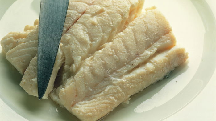 Flake the fish, discarding the skin and bones as you go, then put it on one side while you make a sauce by melting the butter in a saucepan and stirring in the flour.