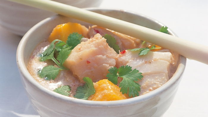 You won't believe how utterly simple and easy this is, and yet it tastes exotic and wonderful and, what's more, it can all be prepared well in advance and the fish added about 10 minutes before you want to eat it.
