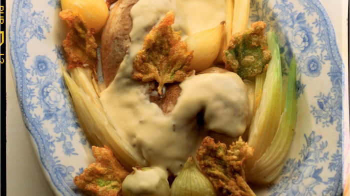 Next, make the sauce by melting the butter in a small saucepan, adding the flour and cooking it (stirring all the time) until the mixture turns a pale straw colour – this takes 3-4 minutes. Then, starting off with a wooden spoon and finishing with a whisk, add the stock gradually and whisk until you have a smooth, glossy sauce. Simmer the sauce very gently for 5 minutes. Add the cream and check the seasoning.