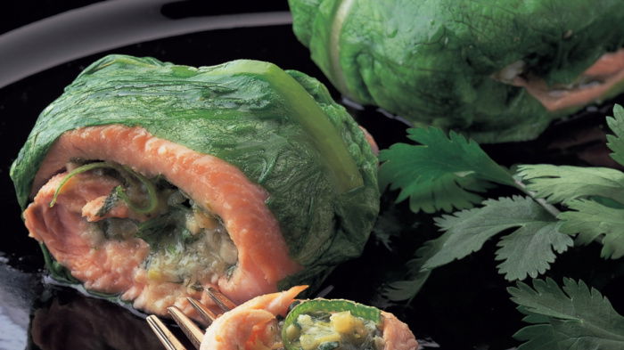 You won't believe how easy it is. If you want to prepare it a couple of hours in advance, wrap the stuffed fillets in foil, keep them in the fridge and just wrap the lettuce leaves round before steaming. You can also use sole or plaice instead of trout.