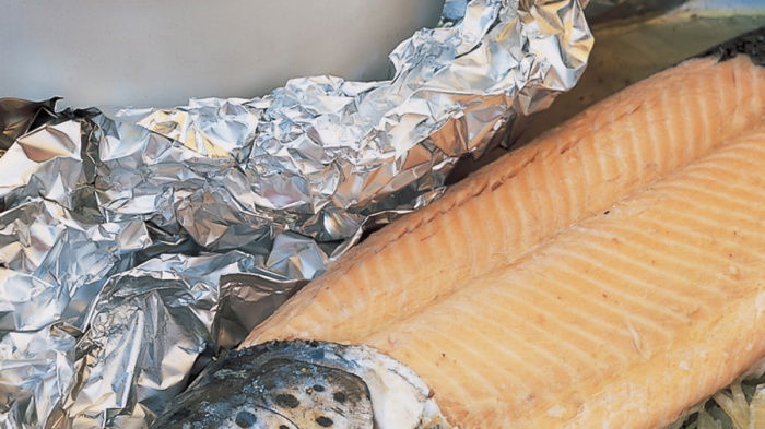 The way I cook a salmon is extremely slowly, wrapped in foil in the oven.