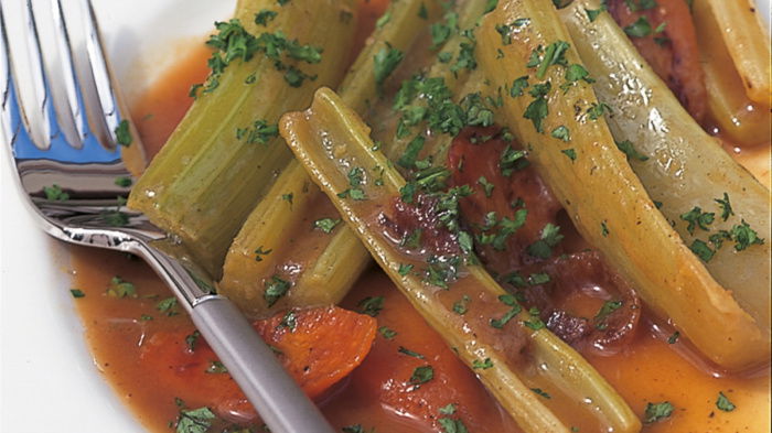 Celery has such a lot going for it as a raw ingredient in salads, and because of that we rather forget how good it is cooked and served as a vegetable.