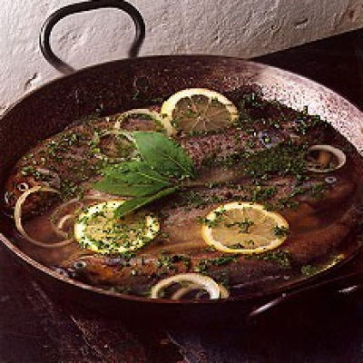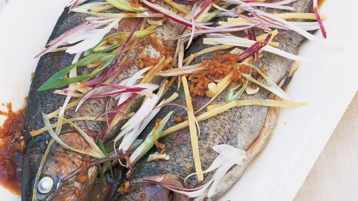 The fat in both trout and salmon is the good kind we all need to include in our diets. If you’re wondering what the pink bits are in the photograph, they’re pink spring onions, which looked very pretty the day we took the picture!