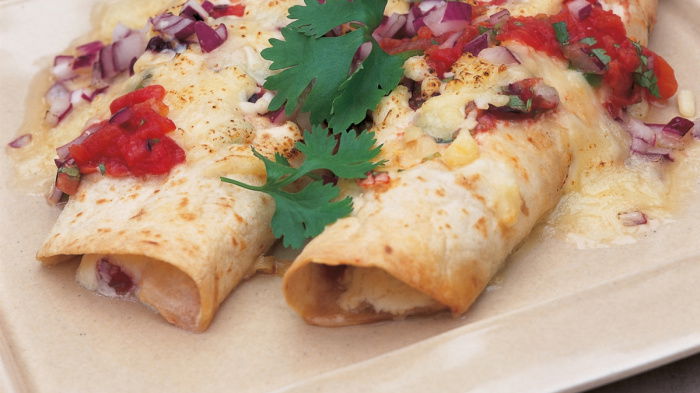 Well, they're Mexican wheat-flour pancakes that can be spread with some spicy salsa and stuffed with almost anything you have handy – in this case cheese – and then baked. An excellent light lunch dish served with a salad.