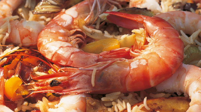 Now turn the heat to low, put a lid on and let it barely simmer for 20 minutes. Then, check the rice is cooked and return the shelled and the two reserved shell-on prawns to the pan, adding a little more stock if necessary. Cover with a lid for 5 more minutes, then serve garnished with the chopped parsley and spring onions.