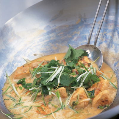 Serve on warm plates with the peanut sauce handed round separately.