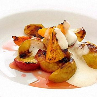 Then place the orange zest, together with the prunes, apricots, sugar, cinnamon stick and 5 fl oz (150 ml) of the cider, in a small saucepan. Now bring it up to a gentle simmer and give it just 5 minutes simmering. After that, remove it from the heat and leave the whole thing to infuse for a further 10 minutes.