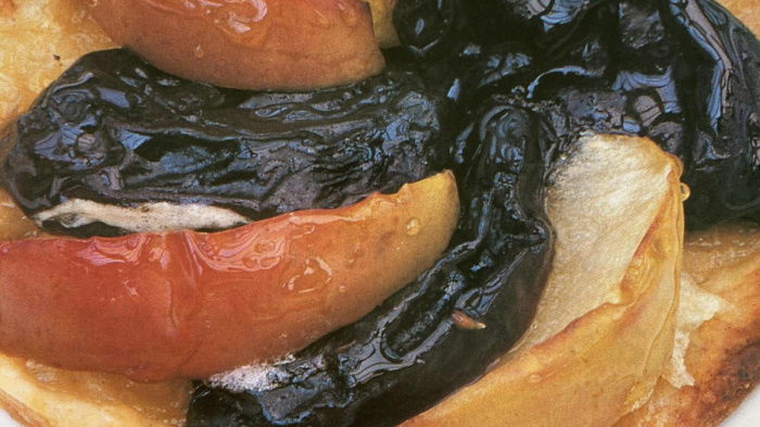 There's no limit to what you can put on top of them (see related recipes below) and you can serve them for a light lunch, as a first course, on a picnic or for a dessert. I often freeze the pastry circles raw, interleaved with foil or greaseproof paper, all ready for an impromptu meal any time at all. If you can get mi-cuit plums, the lovely squashy half-dried Agen prunes from France, so much the better. If not, then pitted dried Agen prunes will be fine.