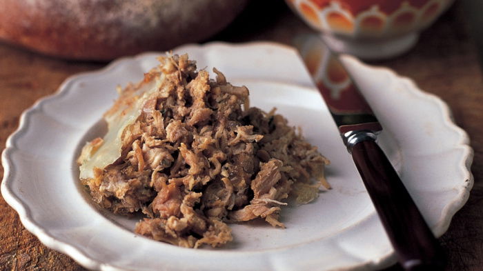 After that, remove the jelly from the bowl of fat, melt it gently and pour it over the rillettes. Then spread a layer of fat over the top to keep the meat moist. Keep the rillettes in the fridge (covered with foil or clingfilm) till needed; it will take about 2 hours to set. Serve with hot toast, crusty bread or crisp baked croutons.