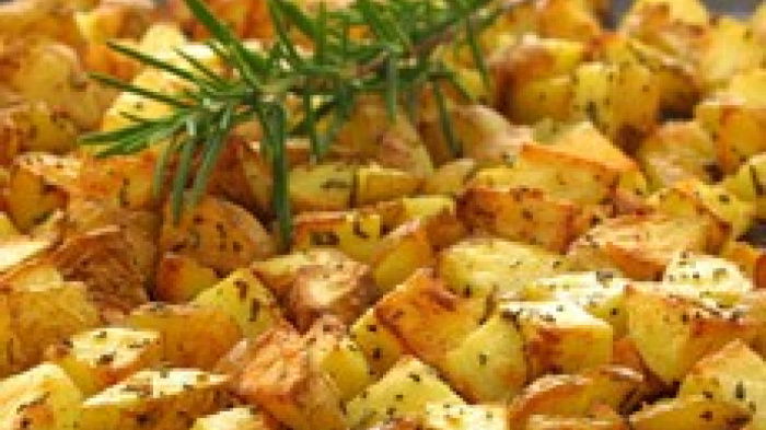 The secret of really crisp sauté potatoes is, first of all, to use olive oil and, secondly, to use two or three frying pans so that the potatoes can cook in a single layer and not overlap each other.